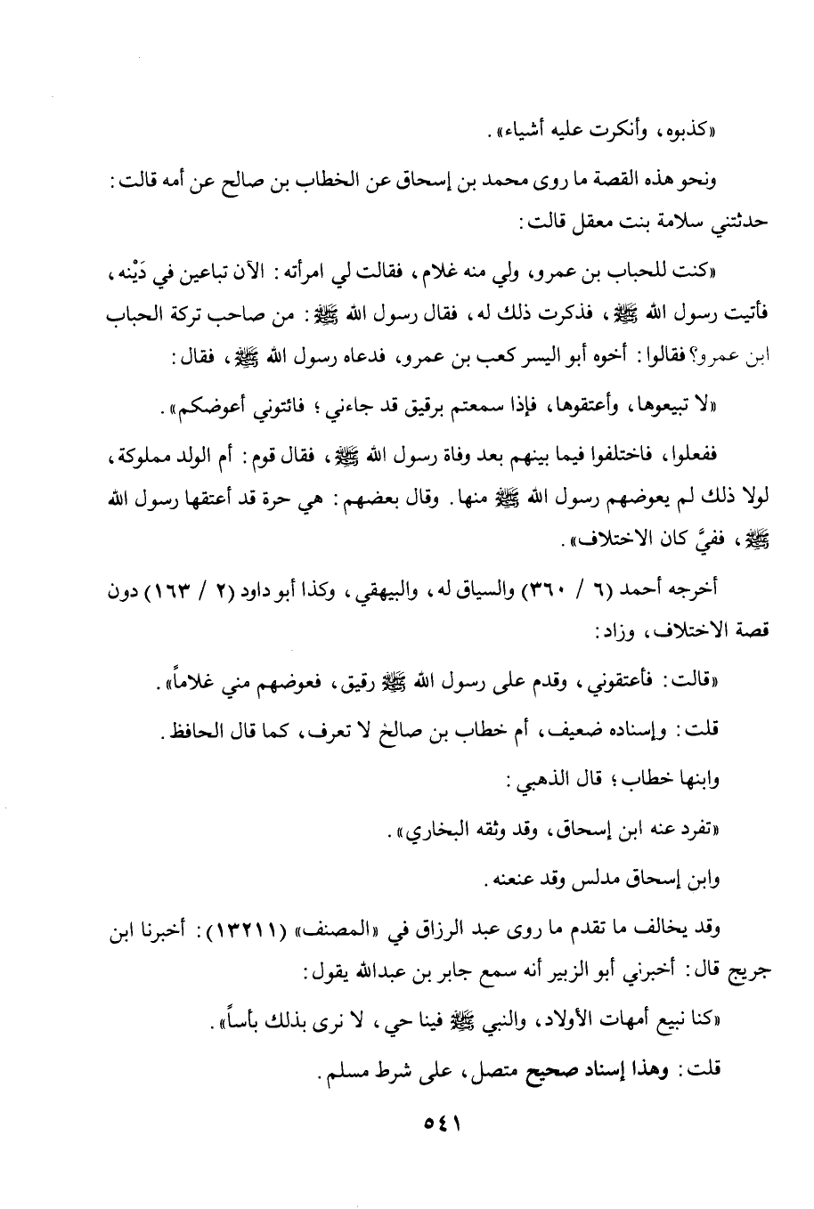 الزبير أنه سمع جابر بن عبد الله يقول: " كنا نبيع أمهات الأولاد، والنبي