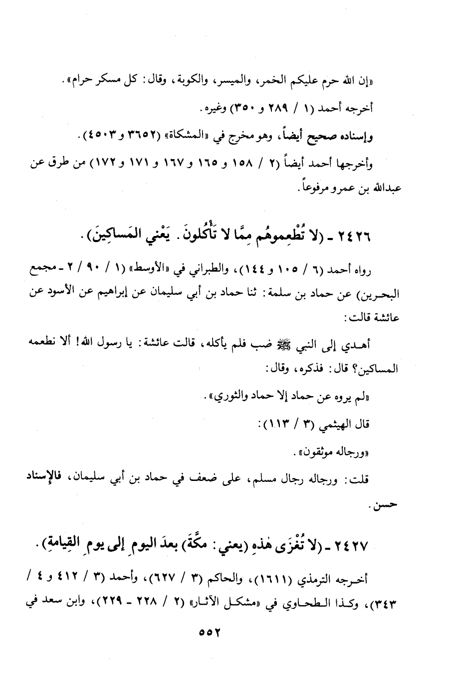 2427 - " لا تغزى هذه (يعني: مكة) بعد اليوم إلى يوم القيامة ".