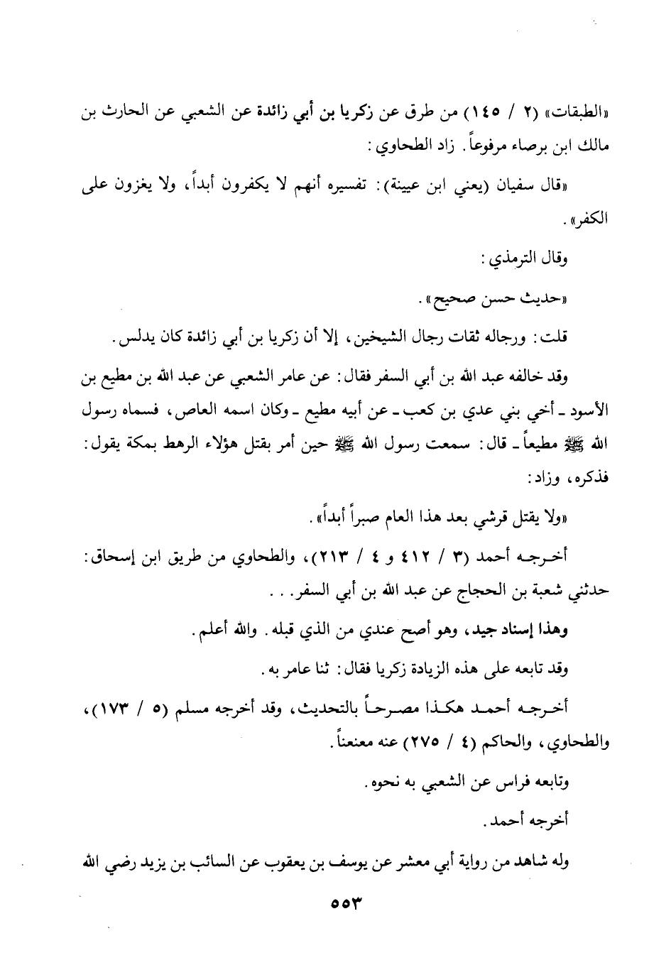 / 173) والطحاوي والحاكم (4 / 275) عنه معنعنا. وتابعه فراس عن الشعبي