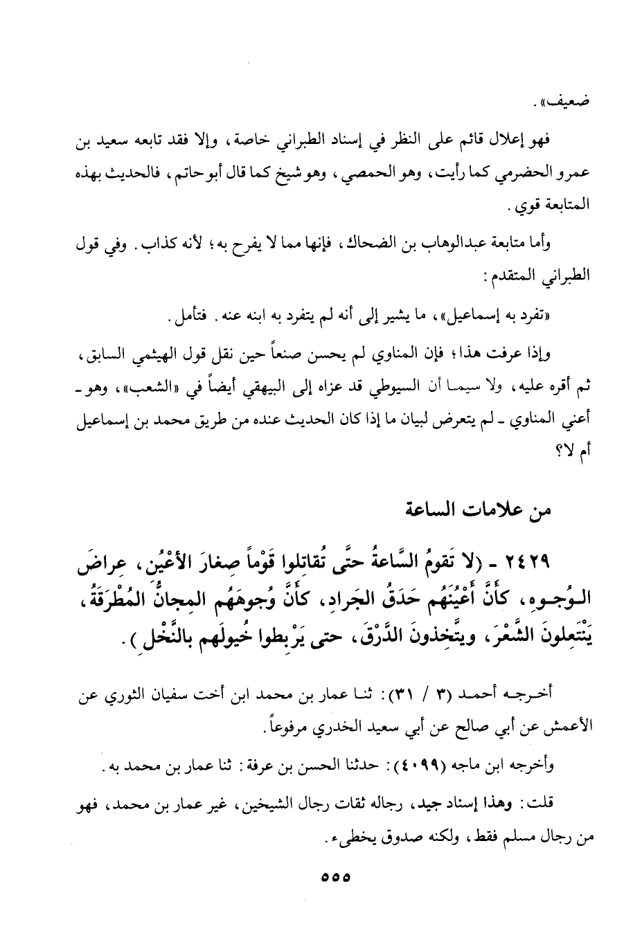 2429 - " لا تقوم الساعة حتى تقاتلوا قوما صغار الأعين عراض الوجوه كأن أعينهم حدق