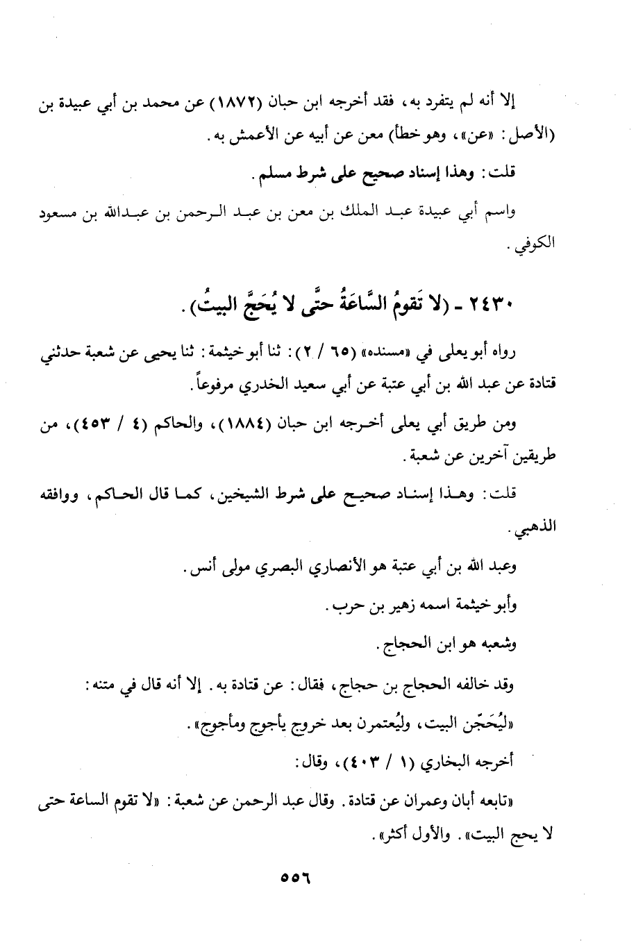 2430 - " لا تقوم الساعة حتى لا يحج البيت ".