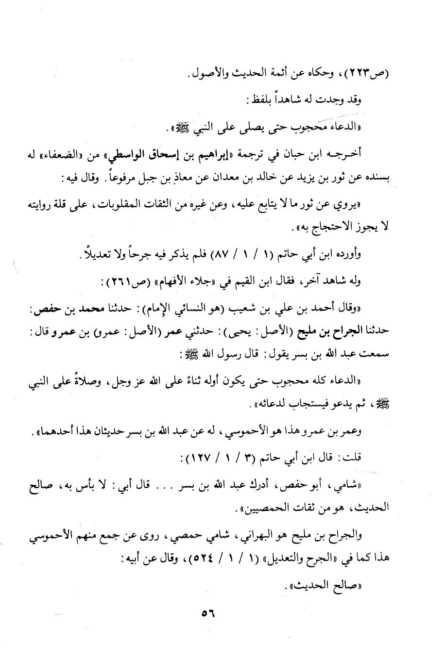 223) ، وحكاه عن أئمة الحديث والأصول. وقد وجدت له شاهدا بلفظ: " الدعاء