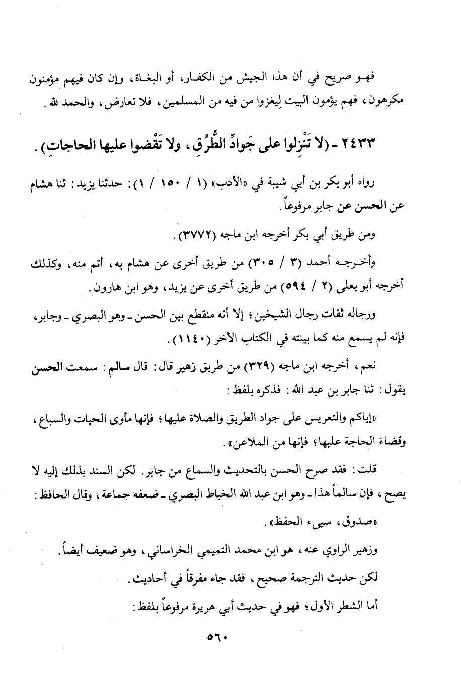 2433 - " لا تنزلوا على جواد الطرق، ولا تقضوا عليها الحاجات ".