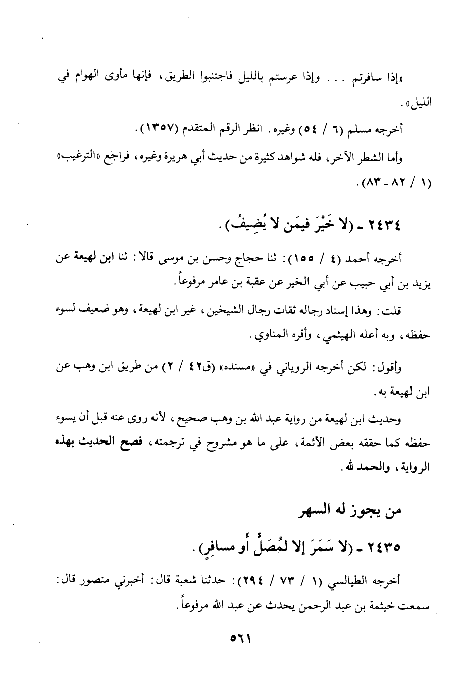 2435 - " لا سمر إلا لمصل أو مسافر ".