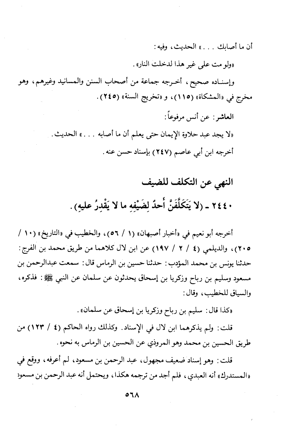 2440 - " لا يتكلفن أحد لضيفه ما لا يقدر عليه ".