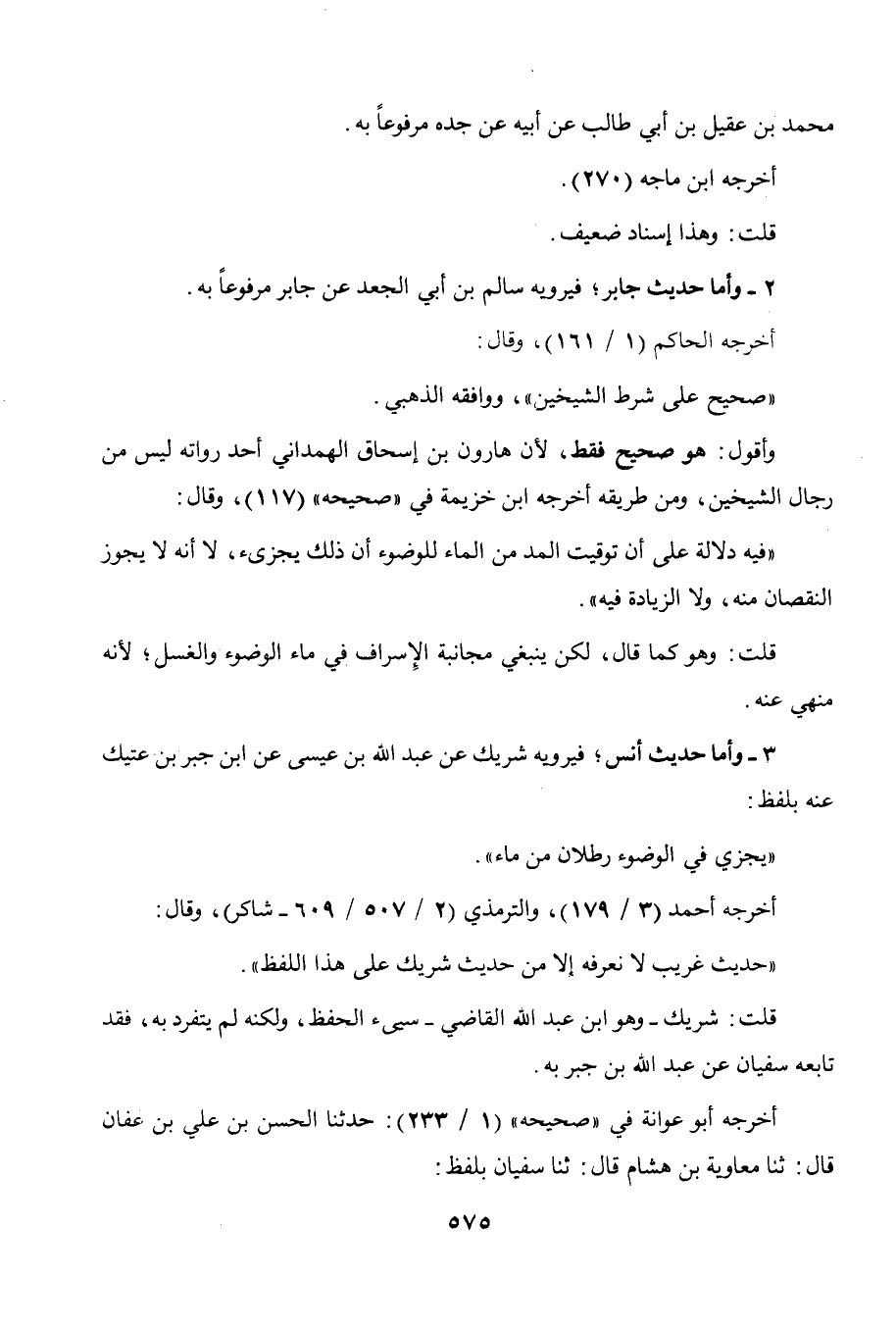 صحيحه " (117) وقال: " فيه دلالة على أن توقيت المد من الماء للوضوء أن ذلك