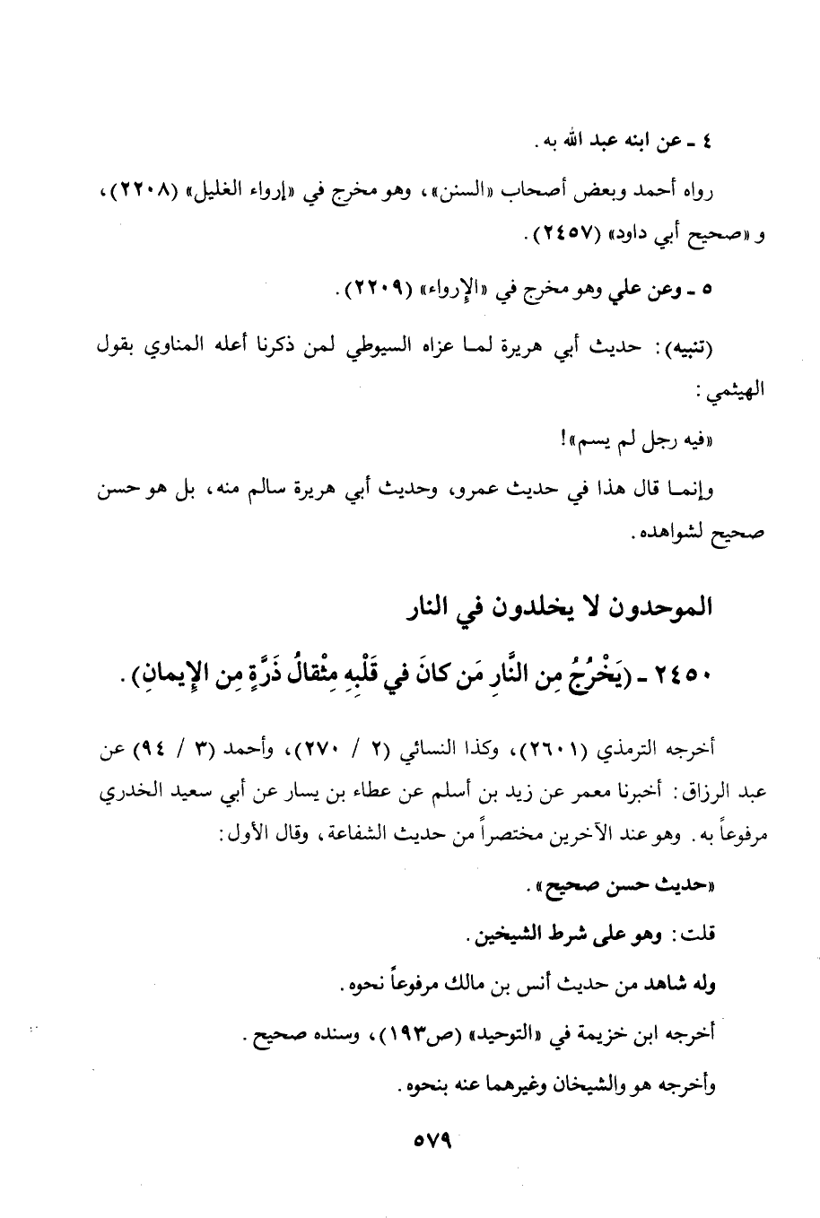 2450 - " يخرج من النار من كان في قلبه مثقال ذرة من الإيمان ".