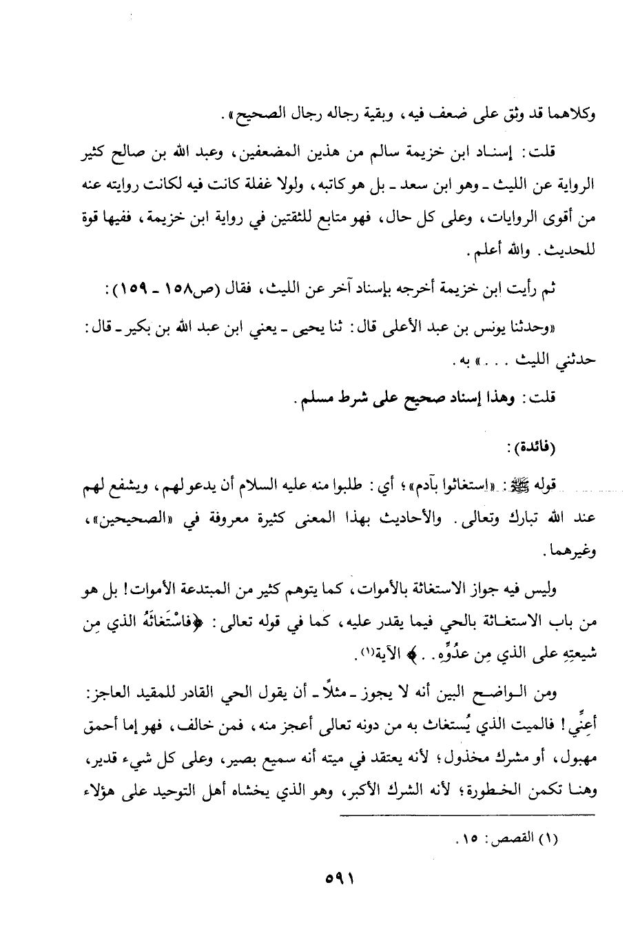 وغيرهما. وليس فيه جواز الاستغاثة بالأموات، كما يتوهم كثير من المبتدعة