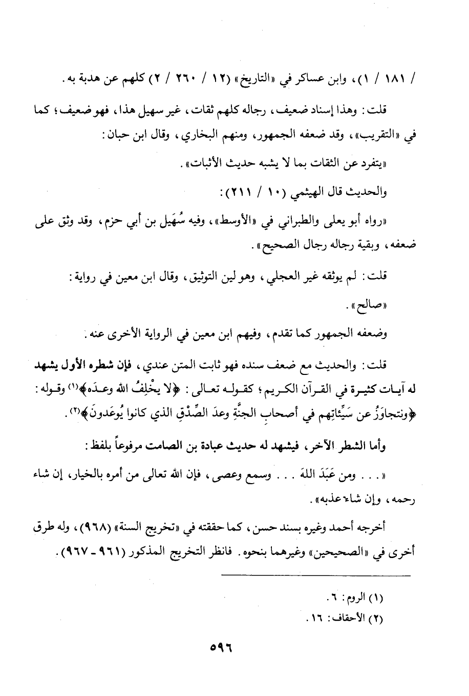 وفيهم ابن معين في الرواية الأخرى عنه. قلت: والحديث مع ضعف سنده فهو ثابت