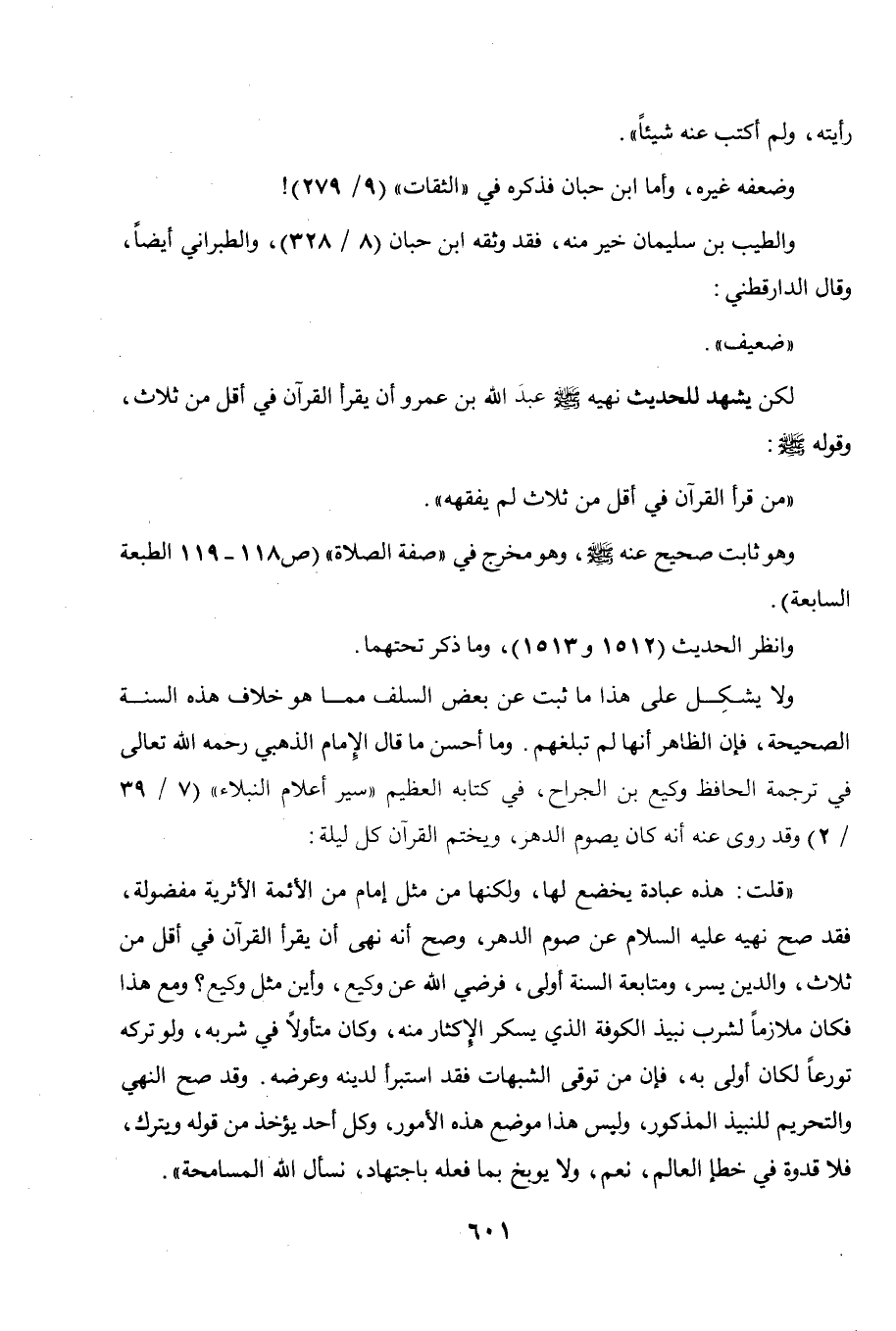 القرآن في أقل من ثلاث، وقوله صلى الله عليه وسلم: " من قرأ القرآن في أقل