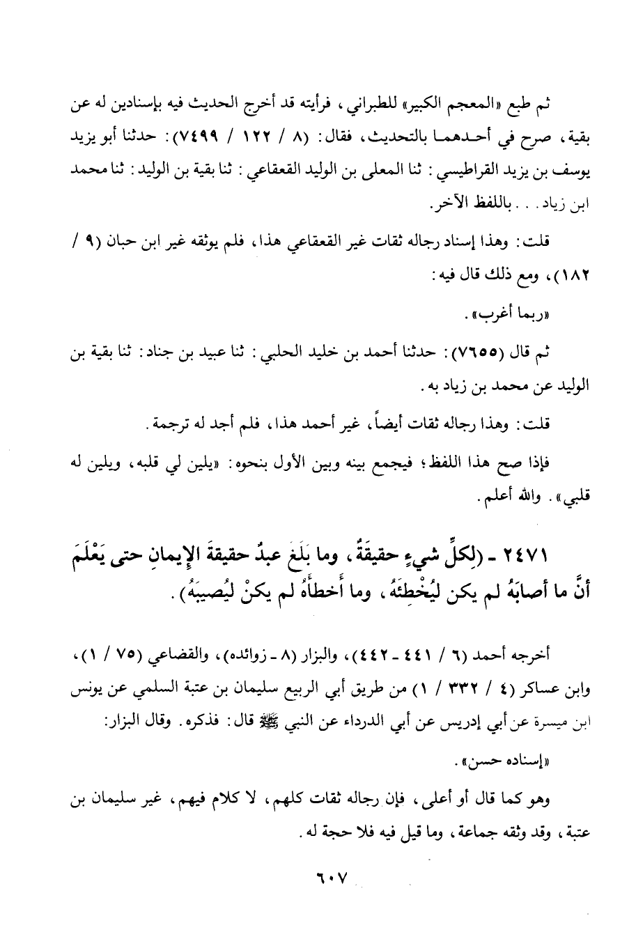 2471 - " لكل شيء حقيقة، وما بلغ عبد حقيقة الإيمان حتى يعلم أن ما أصابه لم يكن