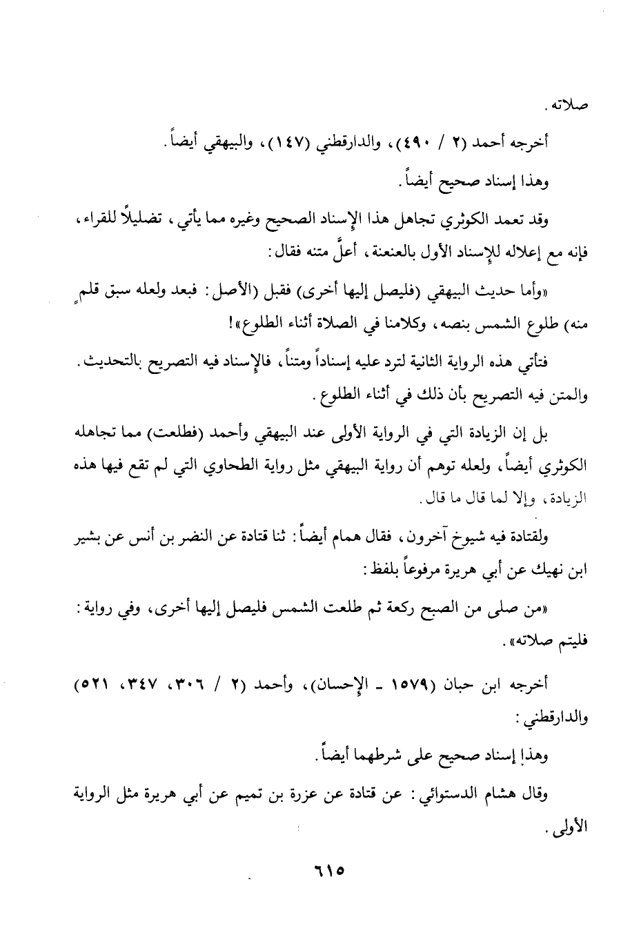 وكلامنا في الصلاة أثناء الطلوع "! فتأتي هذه الرواية الثانية لترد عليه إسنادا