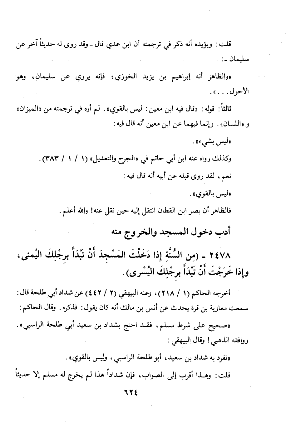 2478 - " من السنة إذا دخلت المسجد أن تبدأ برجلك اليمنى، وإذا خرجت أن تبدأ برجلك