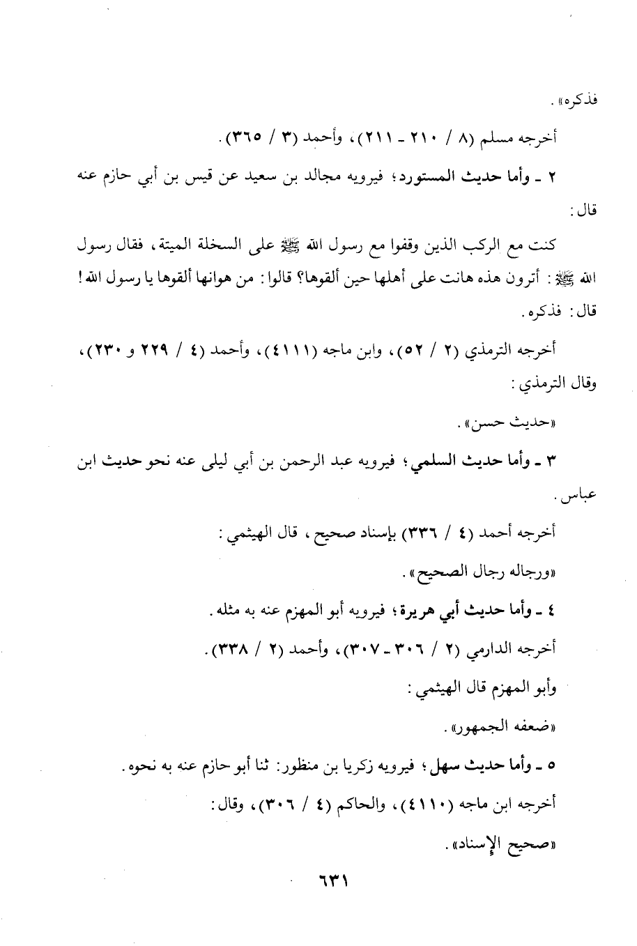 2 - وأما حديث المستورد، فيرويه مجالد بن سعيد عن قيس بن أبي حازم عنه قال: