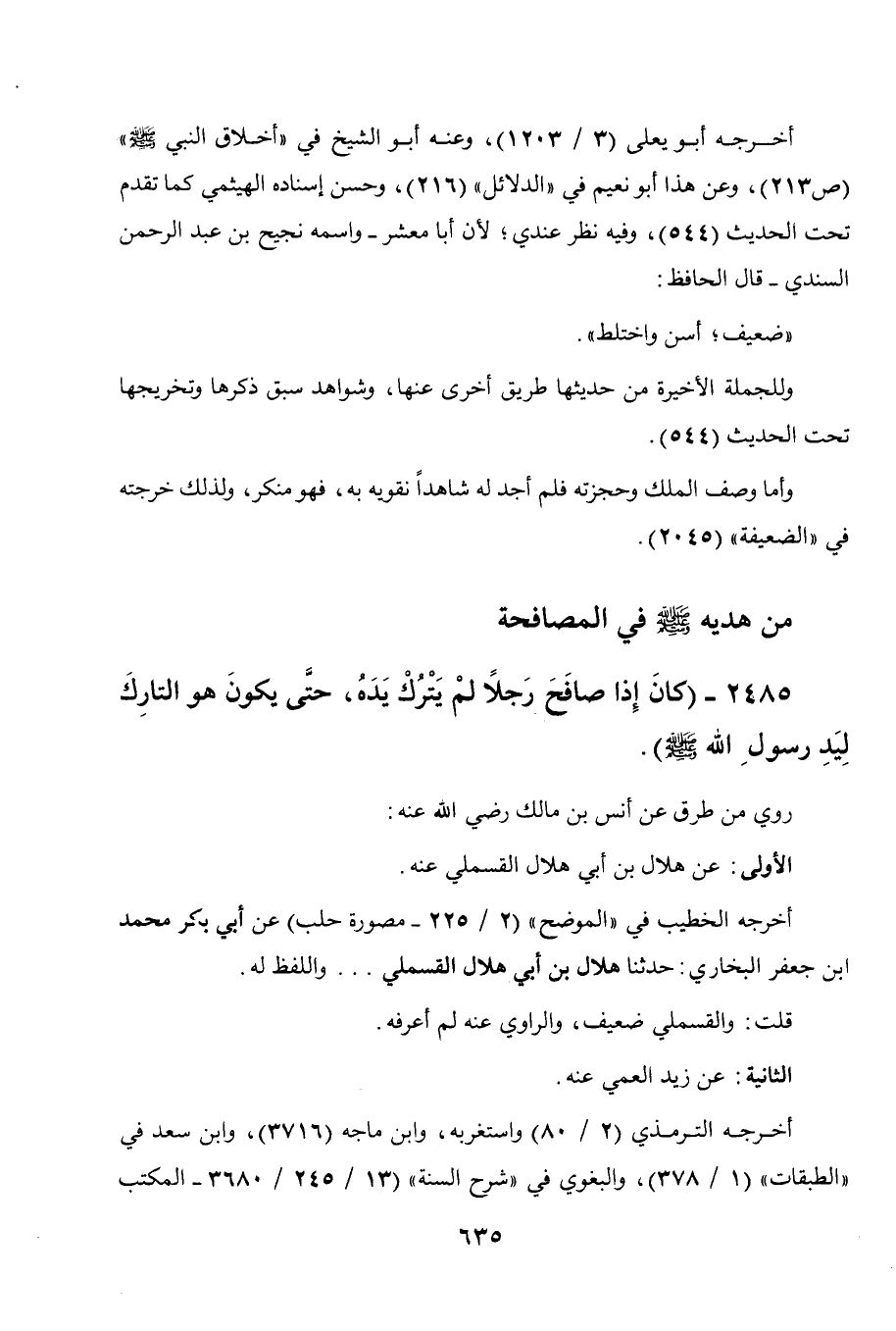 2485 - " كان إذا صافح رجلا لم يترك يده حتى يكون هو التارك ليد رسول الله صلى الله