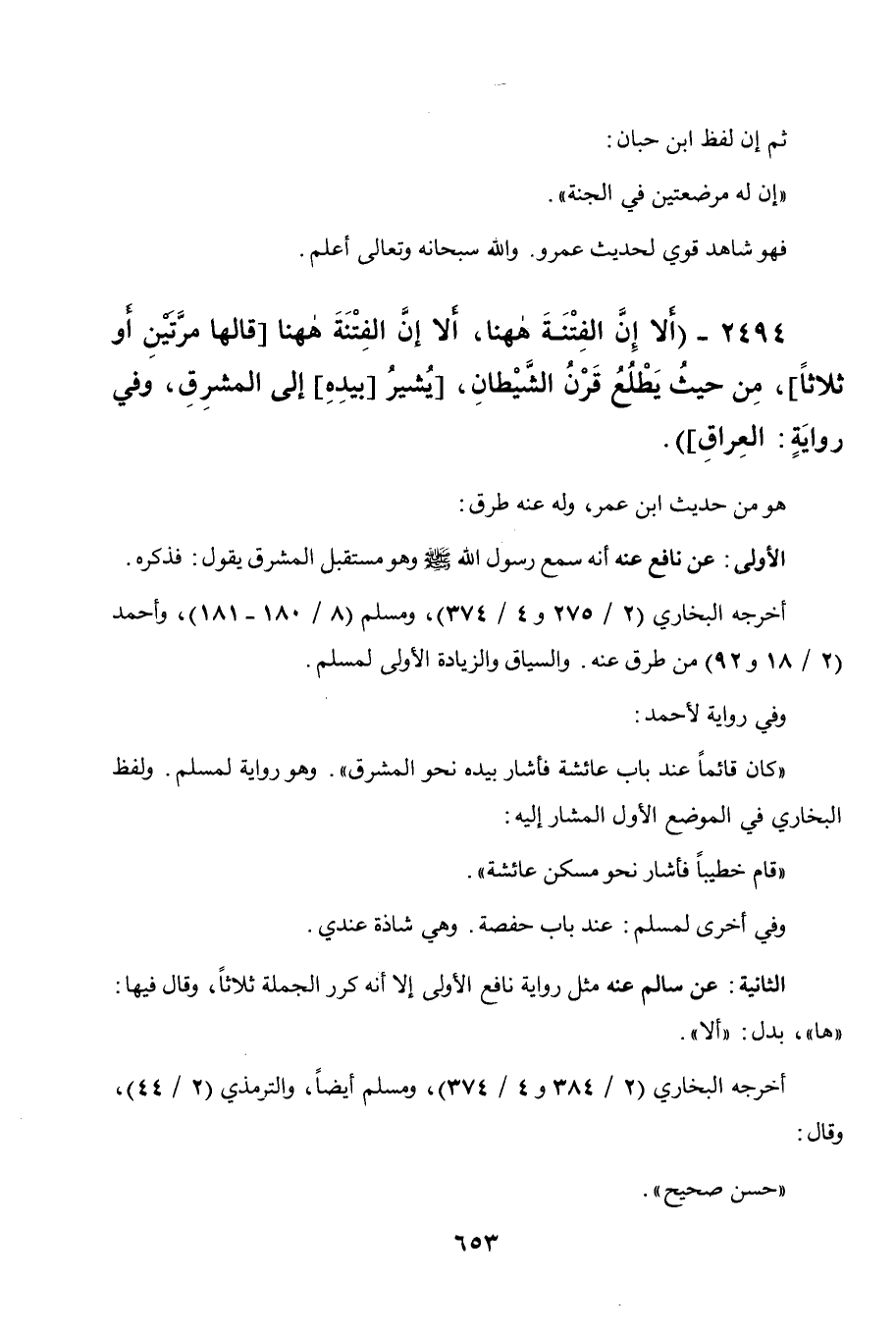 2494 - " ألا إن الفتنة ههنا، ألا إن الفتنة ههنا [قالها مرتين أو ثلاثا] ، من حيث