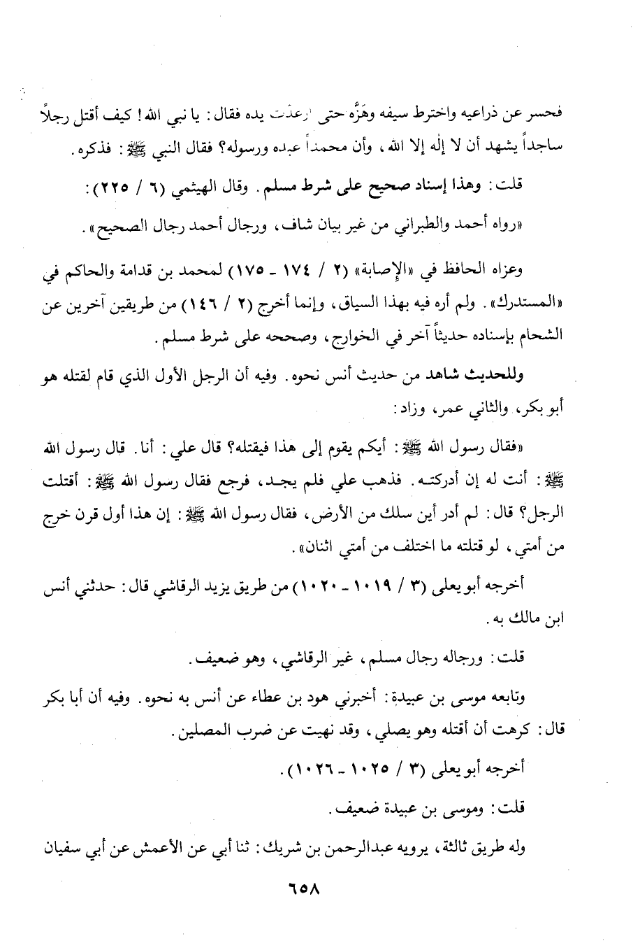 أن أقتله وهو يصلي، وقد نهيت عن ضرب المصلين. أخرجه أبو يعلى (3 / 1025 -