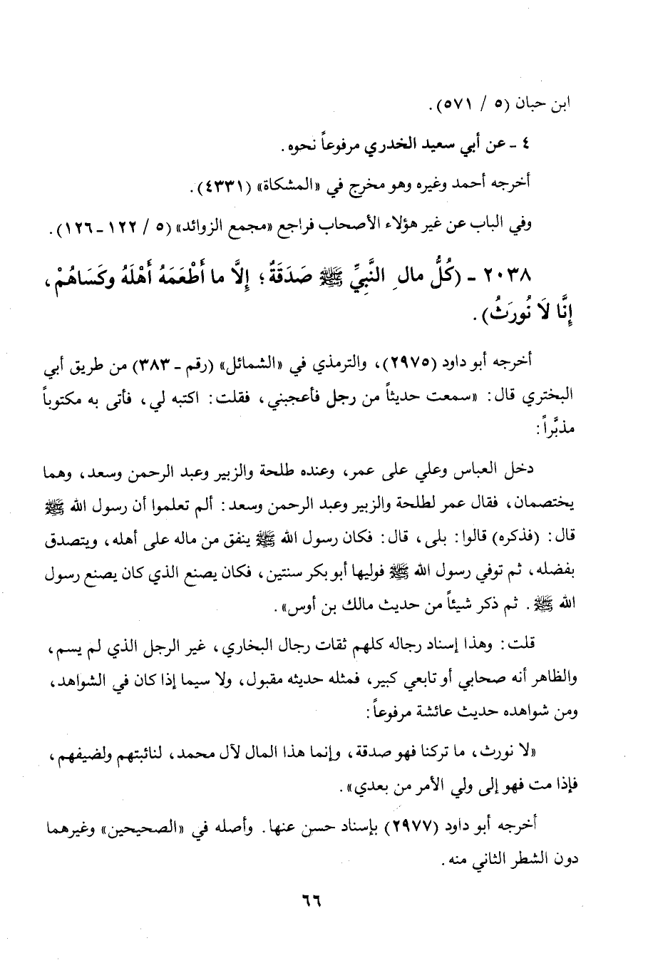 2038 - " كل مال النبي صلى الله عليه وسلم صدقة إلا ما أطعمه أهله وكساهم، إنا