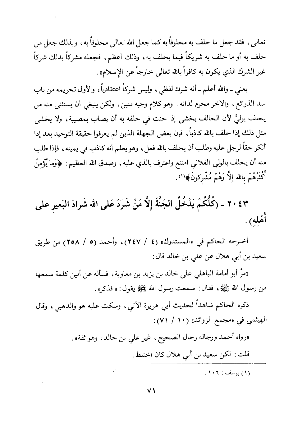 2043 - " كلكم يدخل الجنة إلا من شرد على الله شراد البعير على أهله ".