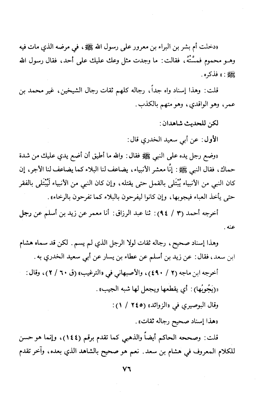 ابن معرور على رسول الله صلى الله عليه وسلم، في مرضه الذي مات فيه وهو محموم