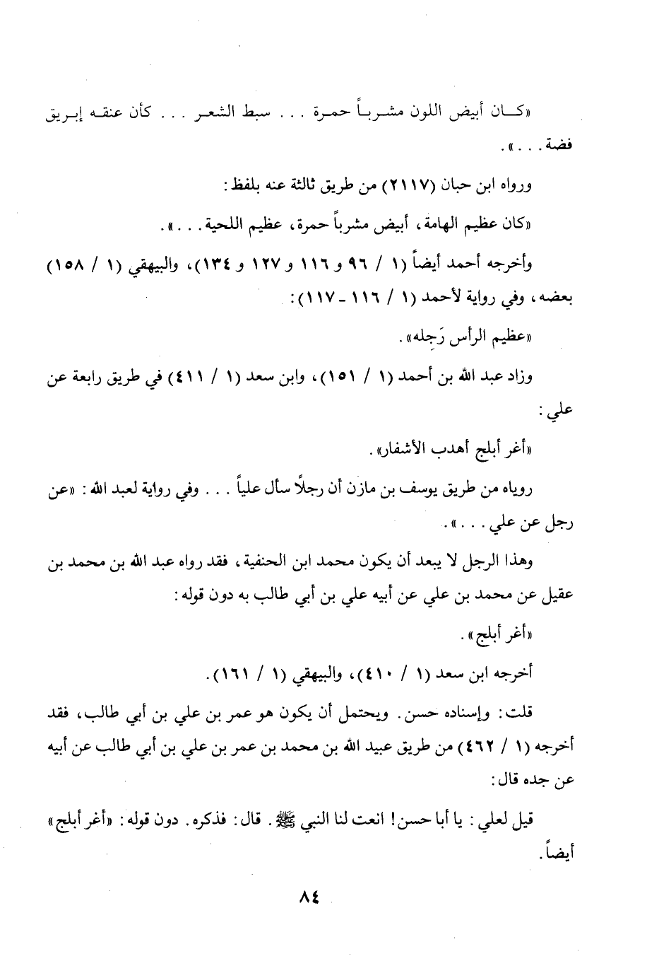سعد (1 / 411) في طريق رابعة عن علي: " أغر أبلج أهدب الأشفار ". روياه من