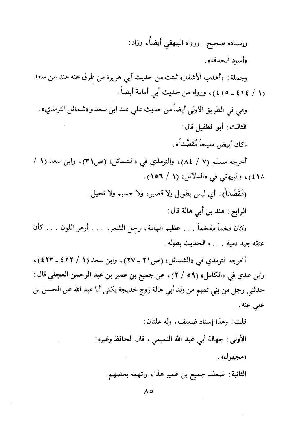 الثاني: أبو الطفيل قال: " كان أبيض مليحا مقصدا ". أخرجه مسلم (7 / 84)