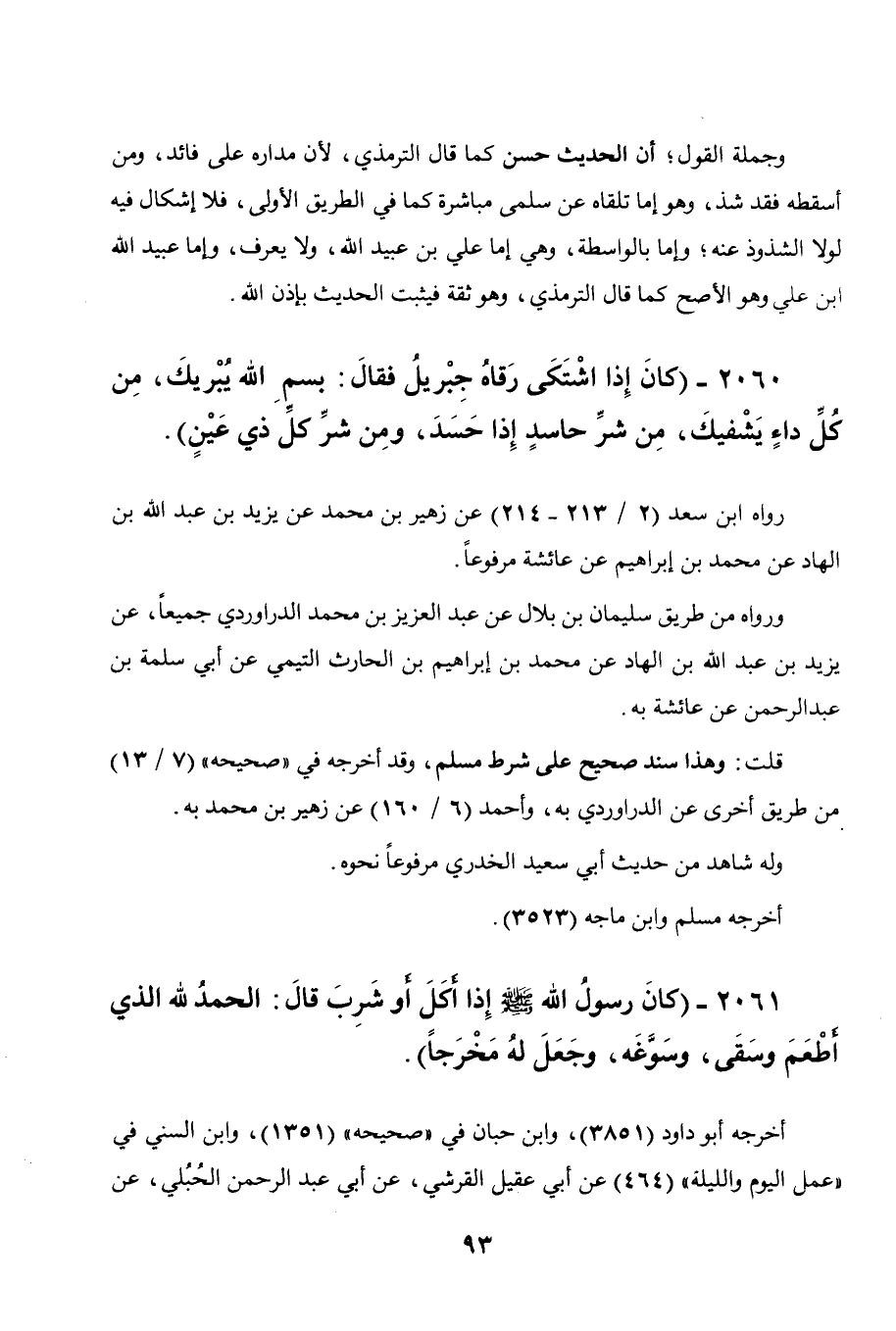 2060 - " كان إذا اشتكى رقاه جبريل فقال: بسم الله يبريك من كل داء يشفيك ومن شر