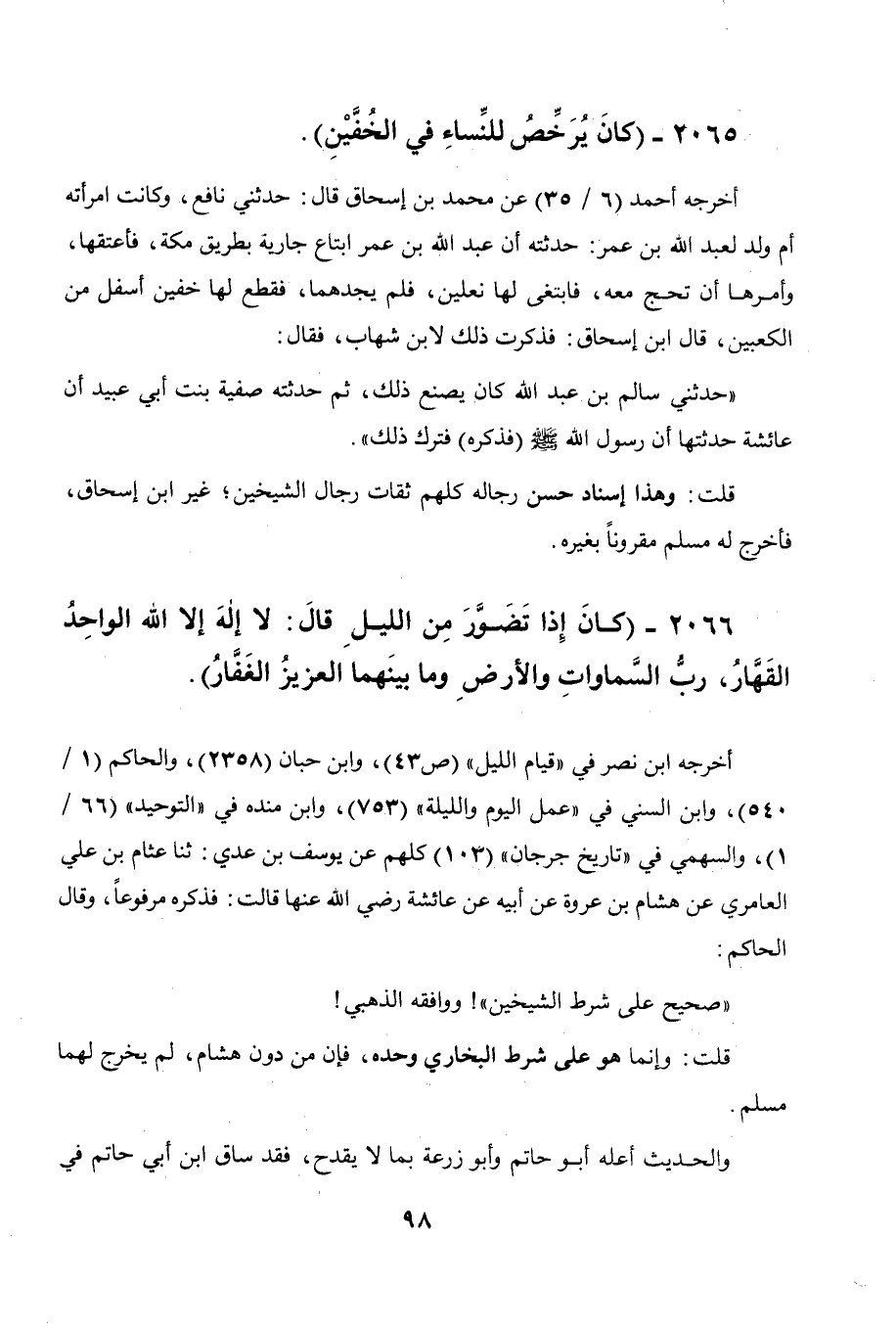 2066 - " كان إذا تضور من الليل قال: لا إله إلا الله الواحد القهار، رب السماوات