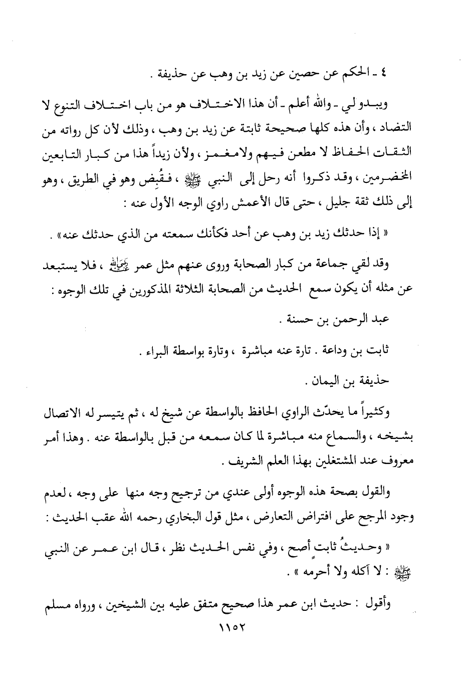 4 - الحكم عن حصين عن زيد بن وهب عن حذيفة. ويبدو لي - والله أعلم - أن هذا