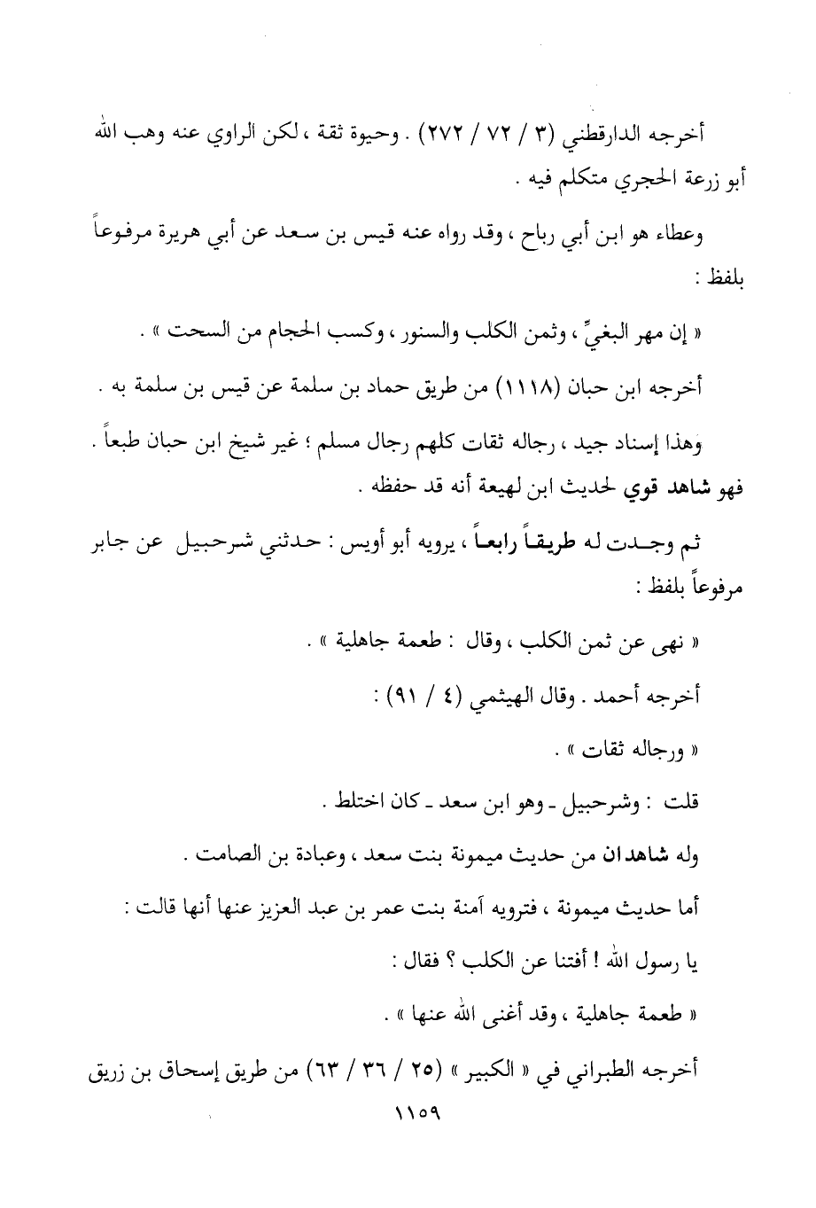 رابعا، يرويه أبو أويس: حدثني شرحبيل عن جابر مرفوعا بلفظ: " نهى عن ثمن