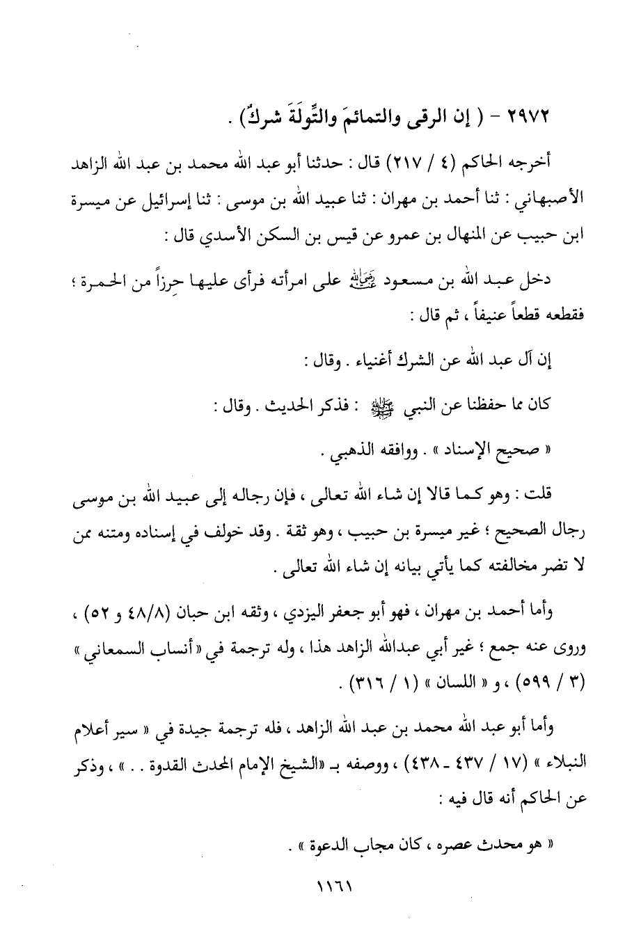 2972 - " إن الرقى والتمائم والتولة شرك ".