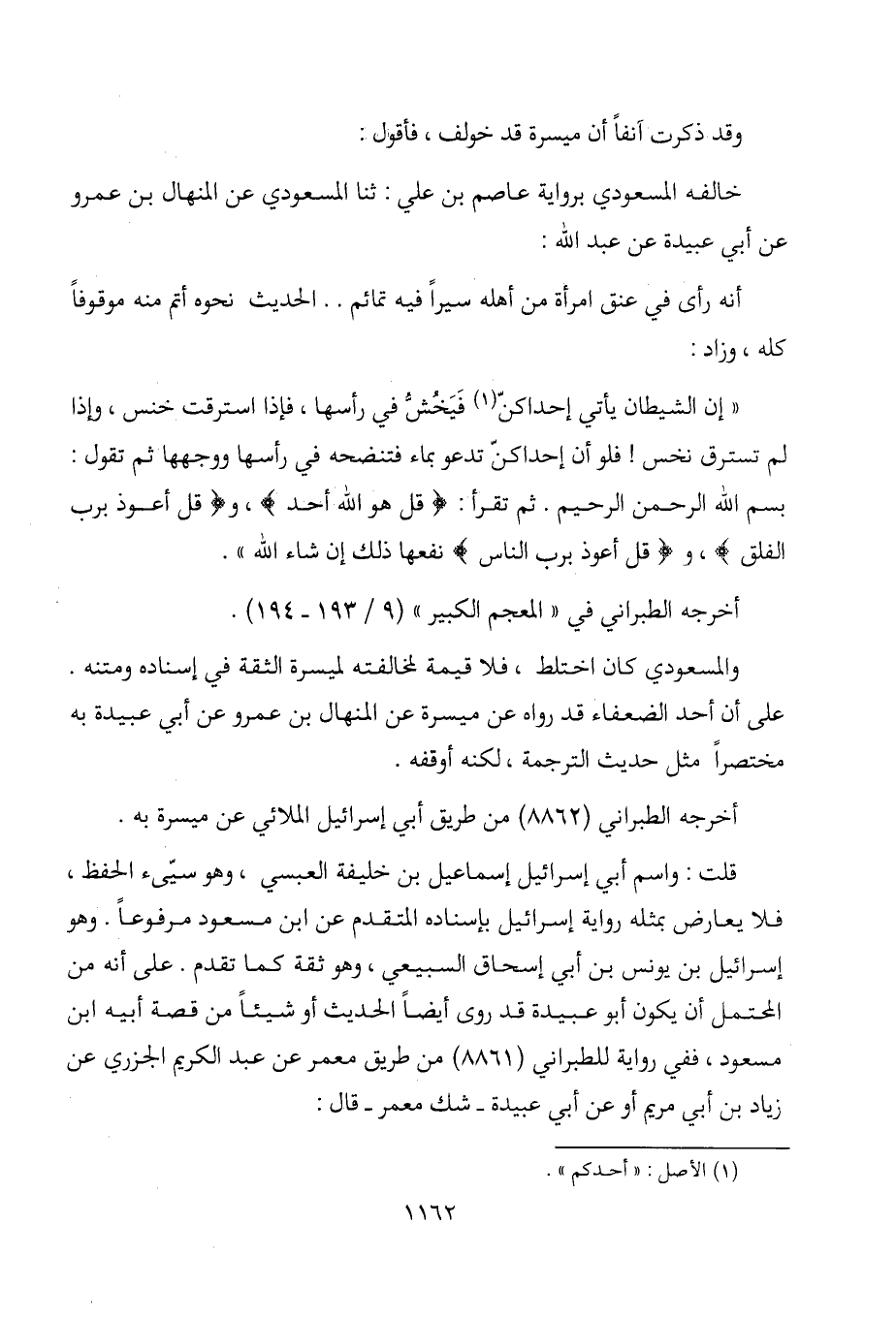 الكبير " (9 / 193 - 194) . والمسعودي كان اختلط، فلا قيمة لمخالفته لميسرة
