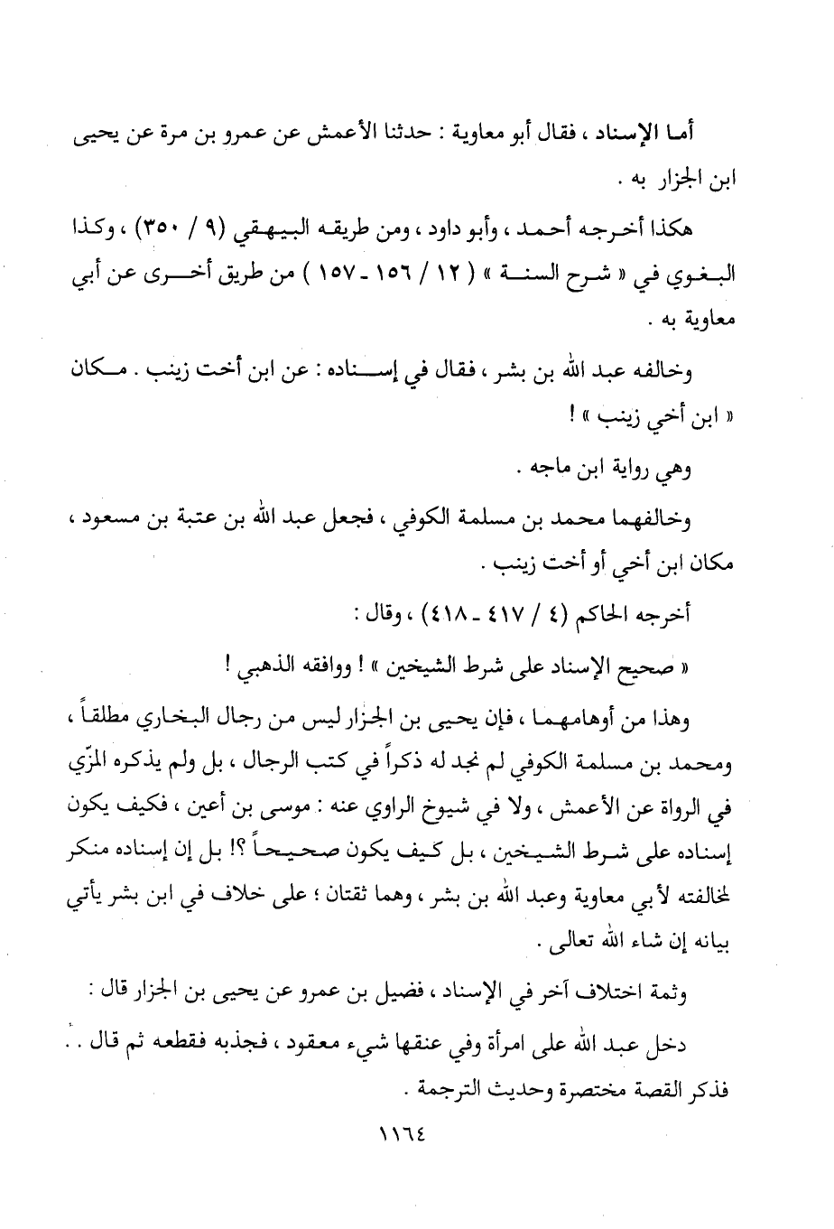 بن بشر، فقال في إسناده: عن ابن أخت زينب. مكان " ابن أخي زينب "! وهي
