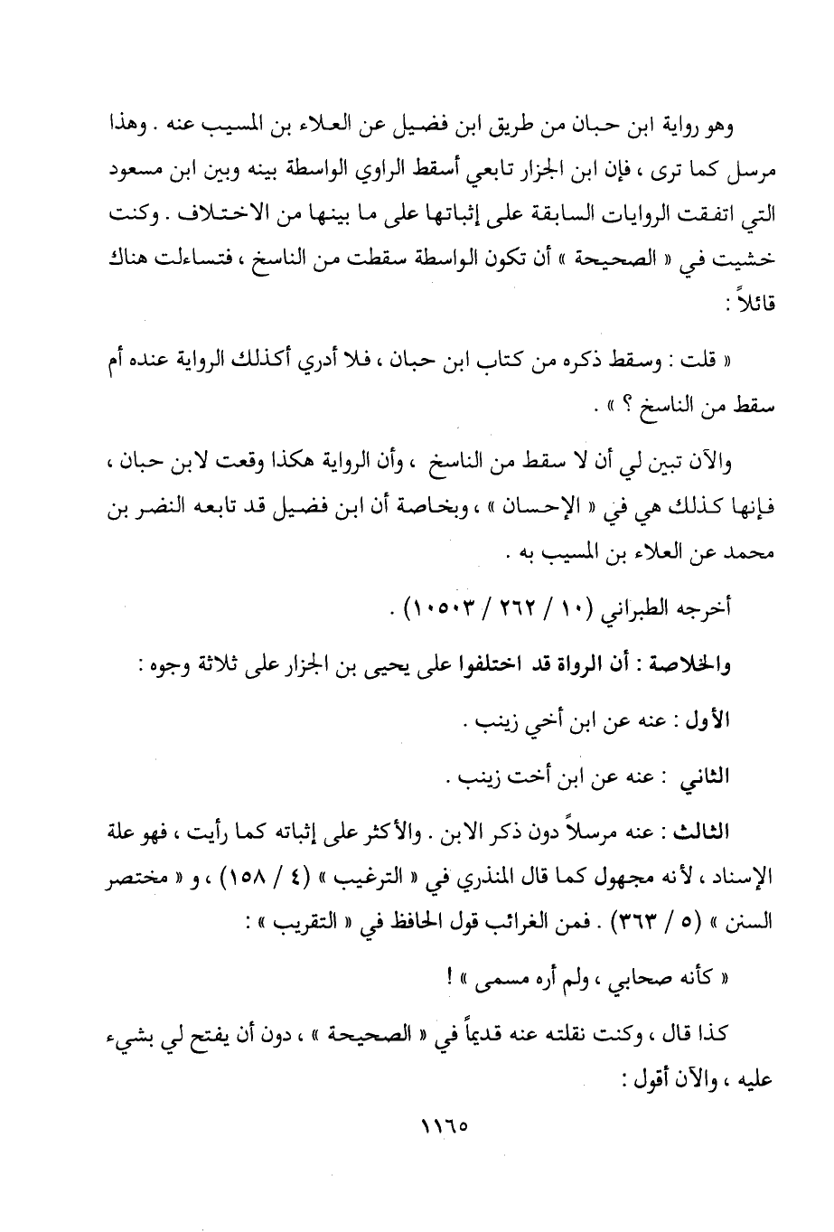 . والآن تبين لي أن لا سقط من الناسخ، وأن الرواية هكذا وقعت لابن حبان،