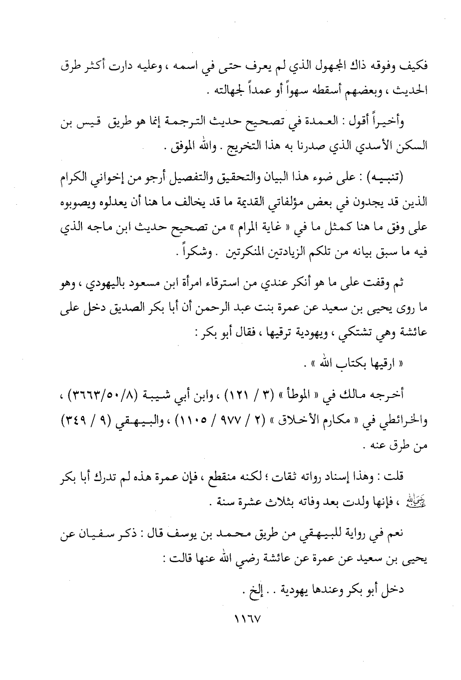 عبد الرحمن أن أبا بكر الصديق دخل على عائشة وهي تشتكي، ويهودية ترقيها،