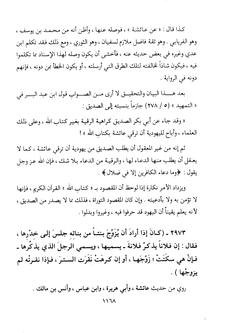 الصديق من يهودية أن ترقي عائشة، كما لا يعقل أن يطلب منها الدعاء لها،