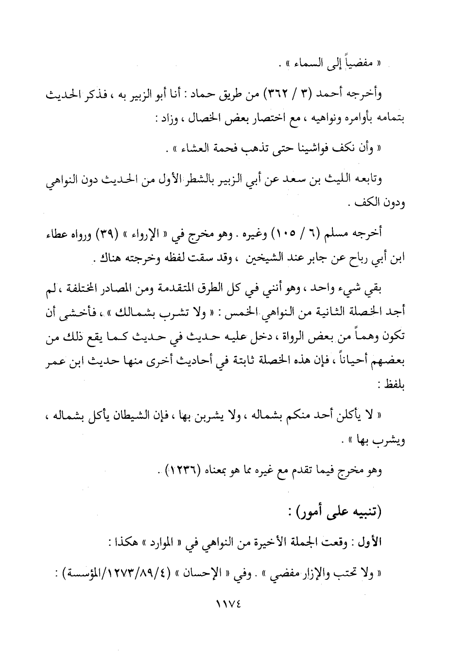 تنبيه على أمور) : الأول: وقعت الجملة الأخيرة من النواهي في " الموارد "