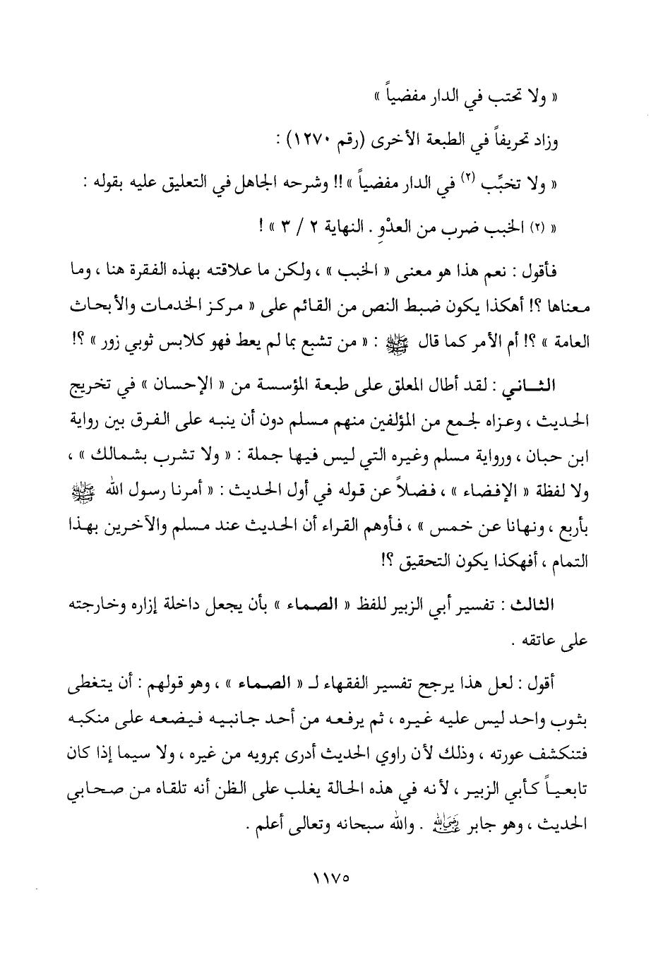 أفهكذا يكون التحقيق؟! الثالث: تفسير أبي الزبير للفظ " الصماء " بأن يجعل