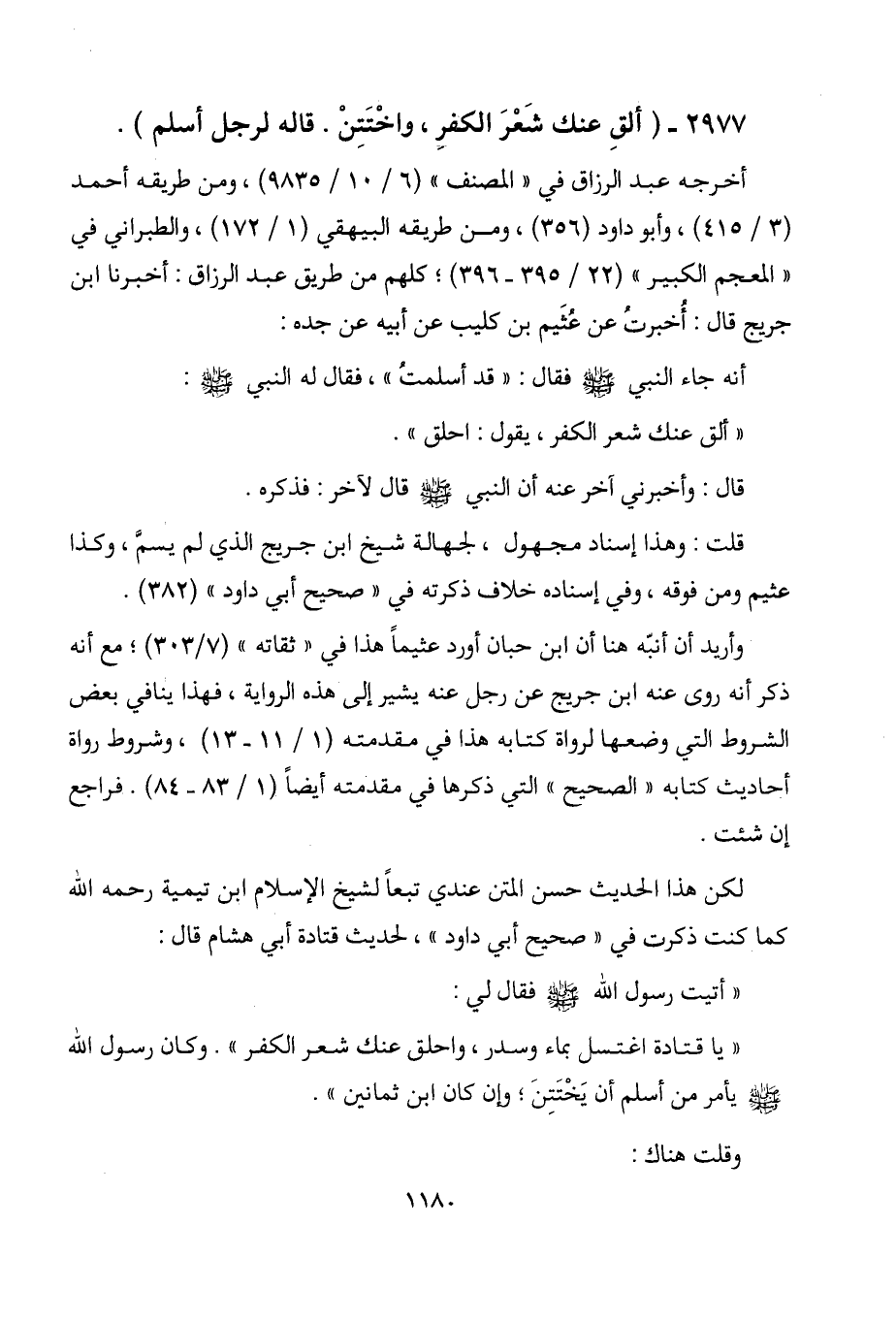 شعر الكفر ". وكان رسول الله صلى الله عليه وسلم يأمر من أسلم أن يختتن،
