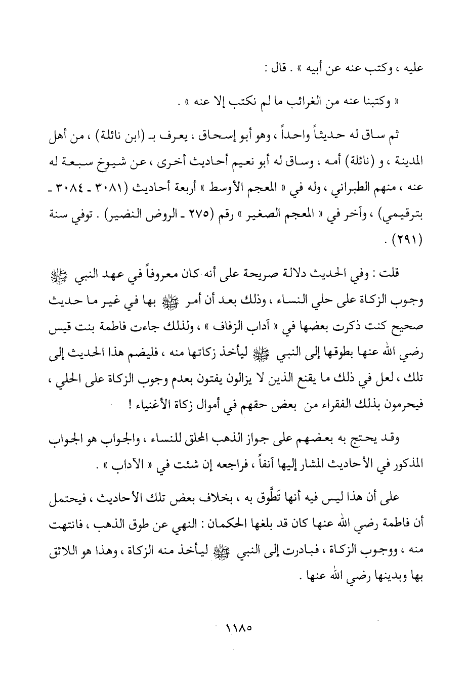 الروض النضير) . توفي سنة (291) . قلت: وفي الحديث دلالة صريحة على أنه