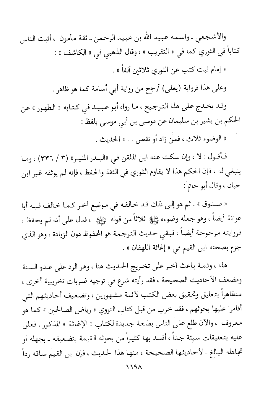 عليه بتعليقات سيئة جدا، أفسد بها كثيرا من بحوثه القيمة بتضعيفه - بجهله أو