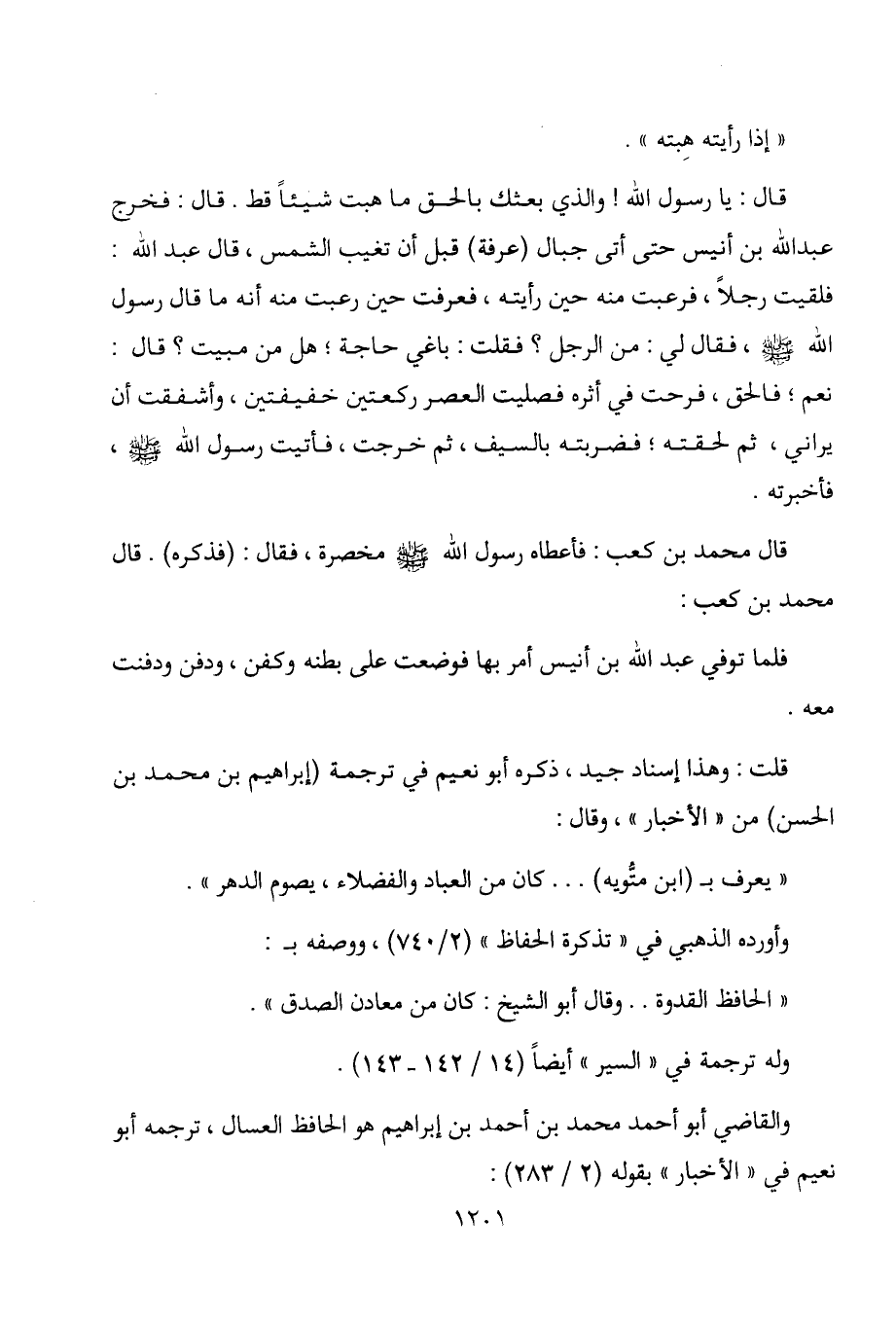 بالحق ما هبت شيئا قط. قال: فخرج عبد الله بن أنيس حتى أتى جبال (عرفة) قبل