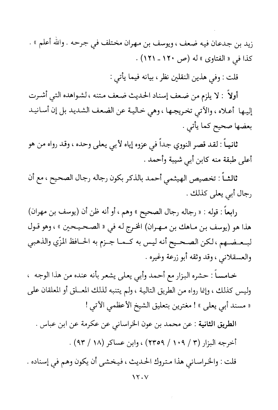 يعلى كذلك. رابعا: قوله: " رجاله رجال الصحيح " وهم، أو أنه ظن أن (يوسف