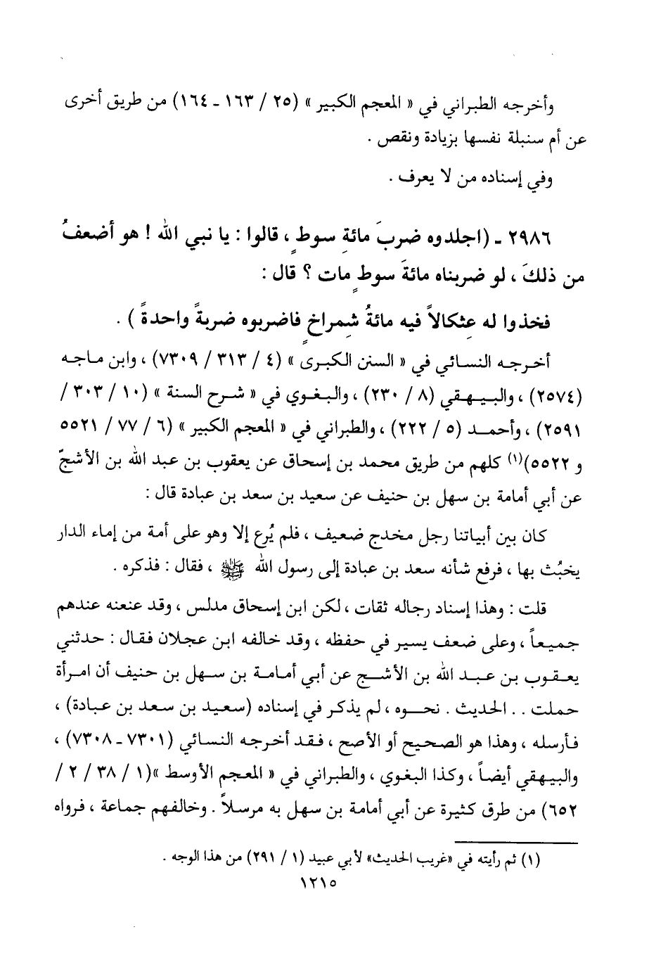 2986 - " اجلدوه ضرب مائة سوط، قالوا: يا نبي الله! هو أضعف من ذلك، لو ضربناه