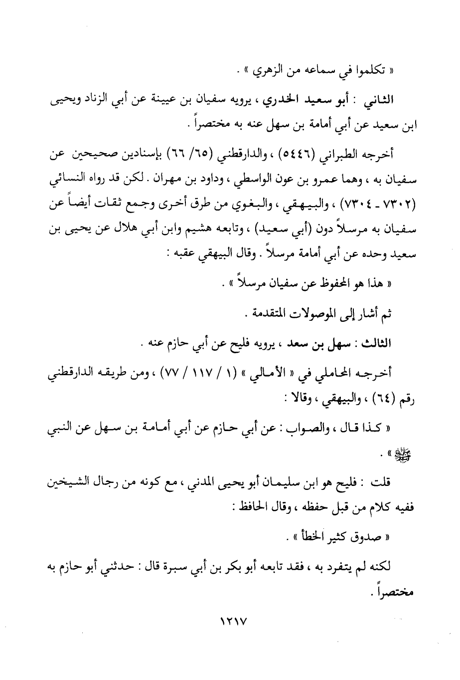 الزهري ". الثاني: أبو سعيد الخدري، يرويه سفيان بن عيينة عن أبي الزناد