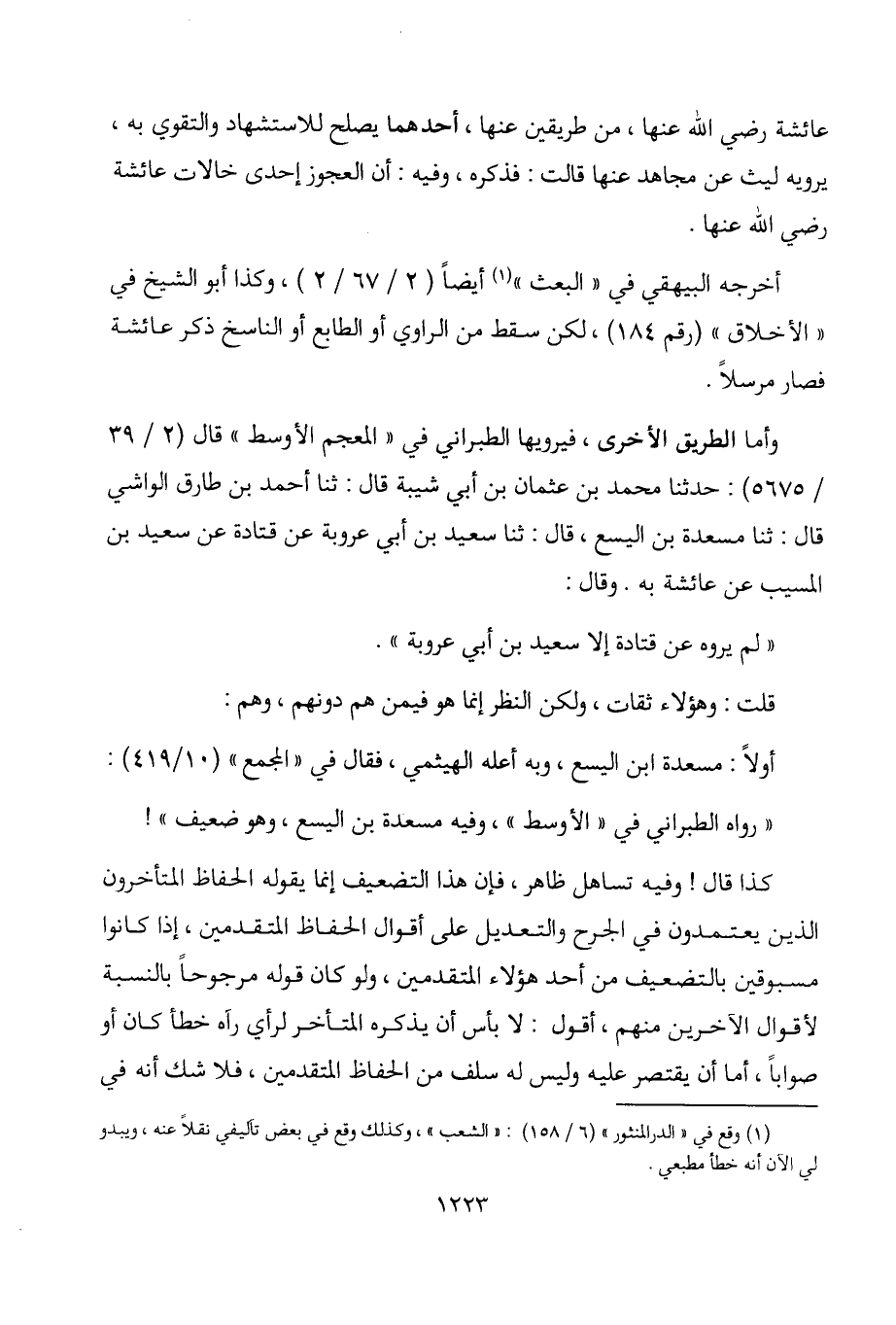 الراوي أو الطابع أو الناسخ ذكر عائشة فصار مرسلا. وأما الطريق الأخرى،