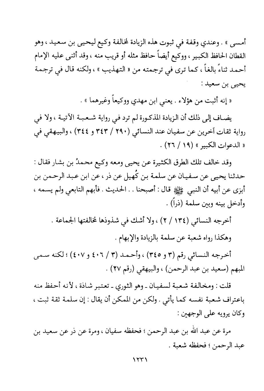 فقال: حدثنا يحيى عن سفيان عن سلمة بن كهيل عن ذر، عن ابن عبد الرحمن بن أبزي