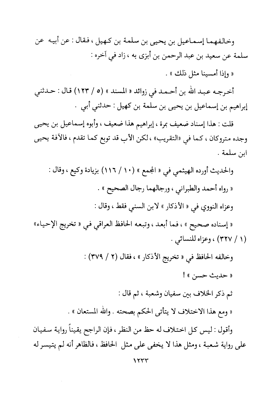 المسند " (5 / 123) قال: حدثني إبراهيم بن إسماعيل بن يحيى بن سلمة بن كهيل