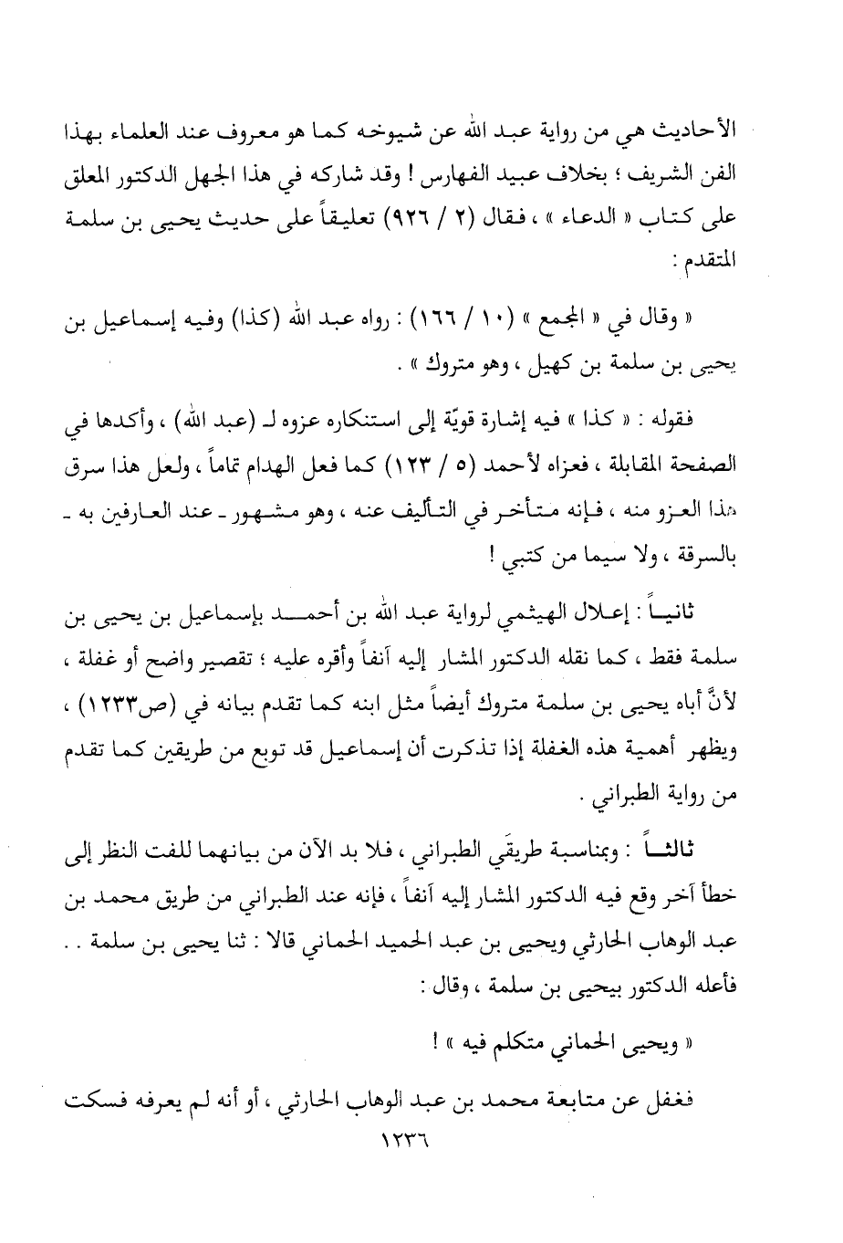 ثانيا: إعلال الهيثمي لرواية عبد الله بن أحمد بإسماعيل بن يحيى بن سلمة فقط،