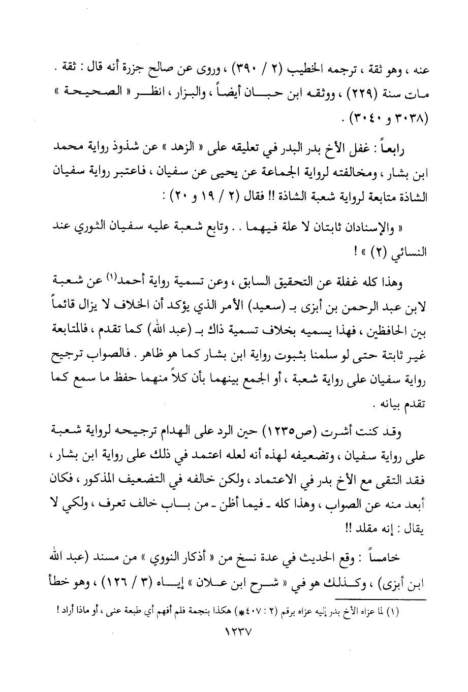 بشار، فقد التقى مع الأخ بدر في الاعتماد، ولكن خالفه في التضعيف المذكور،